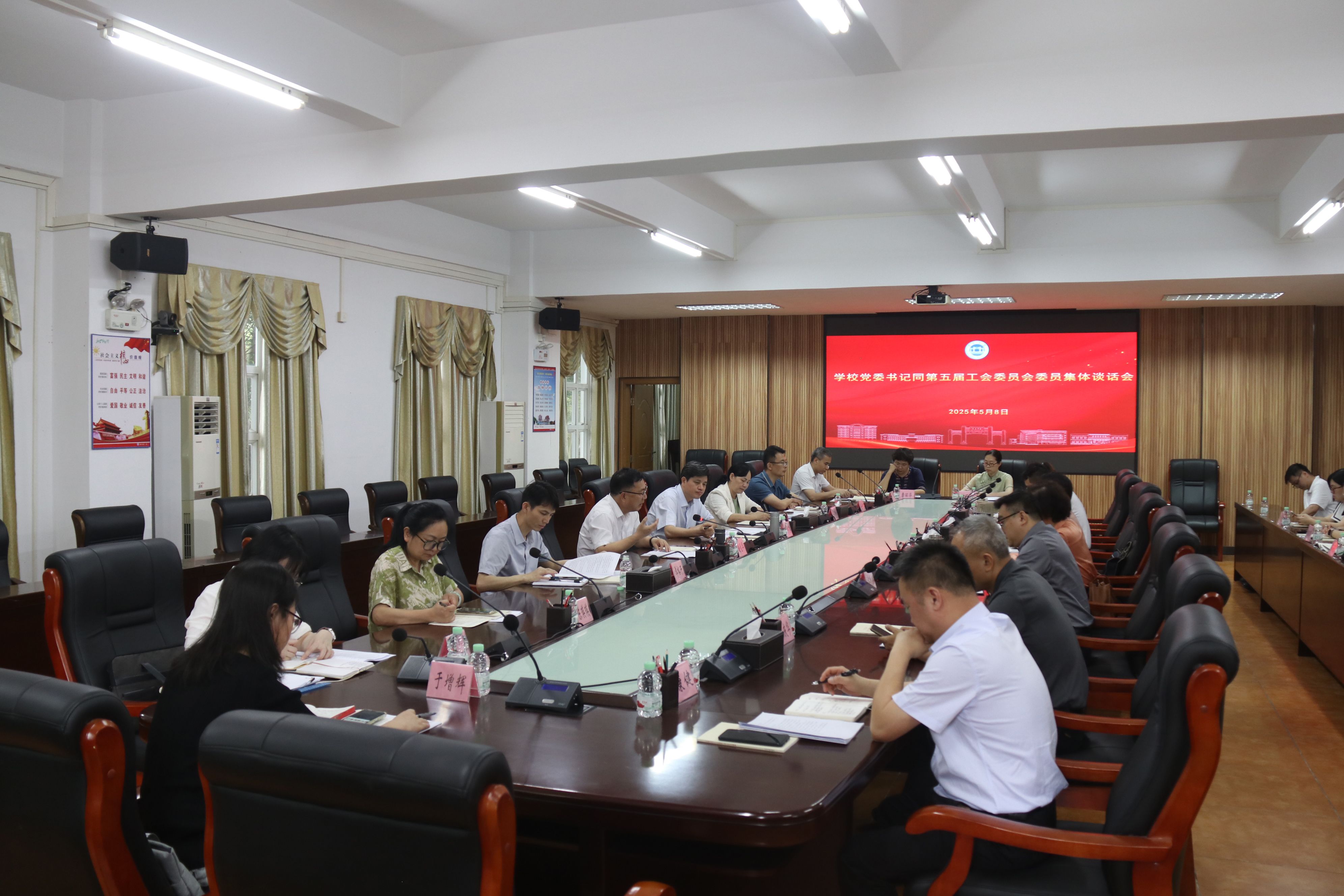 本网讯 5月8日,学校党委书记谢冠华同第五届工会委员会委员集体谈话。组织部负责人、第五届工会委员会、经费审查委员会、女教职工委员会委员参加会议。会议由校党委副书记、工会主席欧洪湛主持。