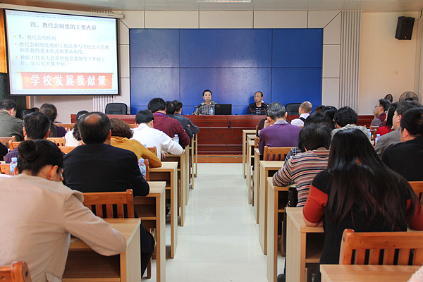 3月19日下午,我校第三届“双代会”代表培训在行政楼就业招聘厅召开。会议围绕教代会及教代会提案等内容作了详细介绍,并为4月中旬召开的双代会预热。