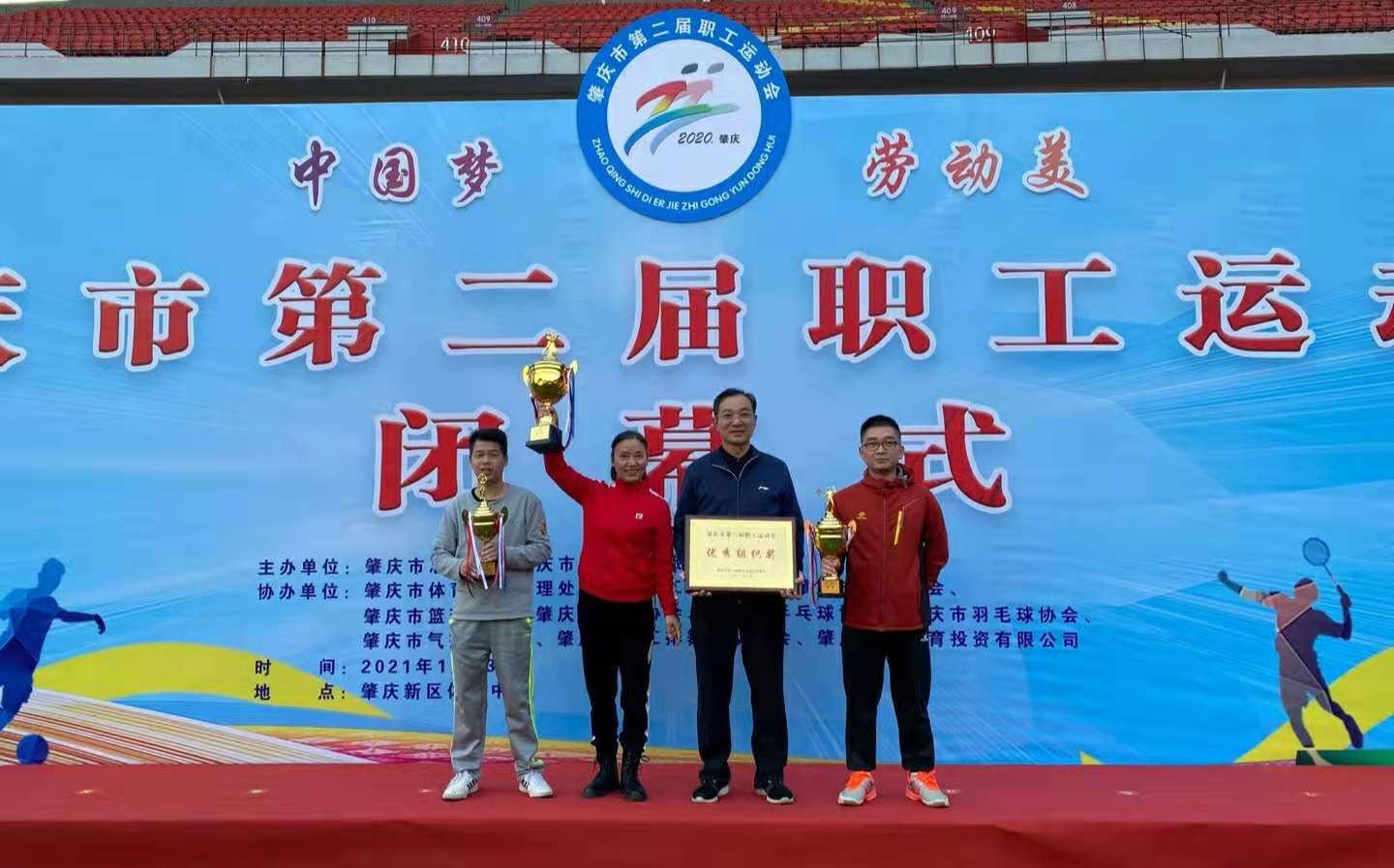 1月23日下午,“中国梦.劳动美”肇庆市第二届职工运动会闭幕式在肇庆新区体育中心专业足球场举行。william威廉中文官网荣获优秀组织奖。