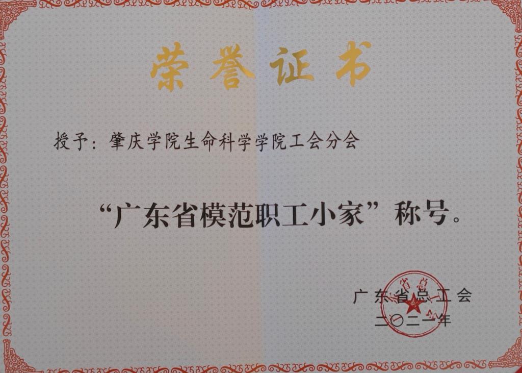 近日,生命科学学院分工会被广东省总工会授予2021年“广东省模范职工小家”称号。