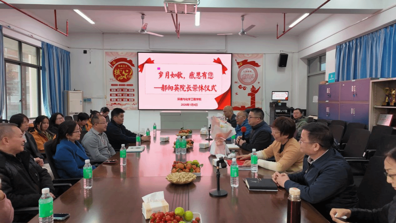 本网讯 近日,环境与化学工程学院在理工楼218室为光荣退休的前院长郝向英教授举办了一场温馨而庄重的荣休座谈会。学院党委书记刘远君、院长李湘、副院长吴贤格及吴燕妮等领导班子成员与教职工代表齐聚一堂,共同回顾郝教授三十八载育人岁月,表达崇高敬意与真挚祝福。座谈会由学院副书记杨原行主持。