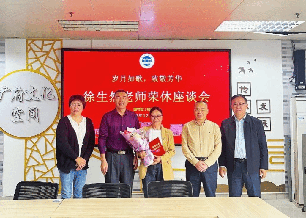 本网讯 12月12日上午,图书馆(档案馆)在福慧图书馆三楼广府文化空间为退休老师徐生然举行了一场温馨而隆重的荣休仪式。图书馆(档案馆)领导班子成员、分工会委员及读者服务部教师代表出席了仪式。