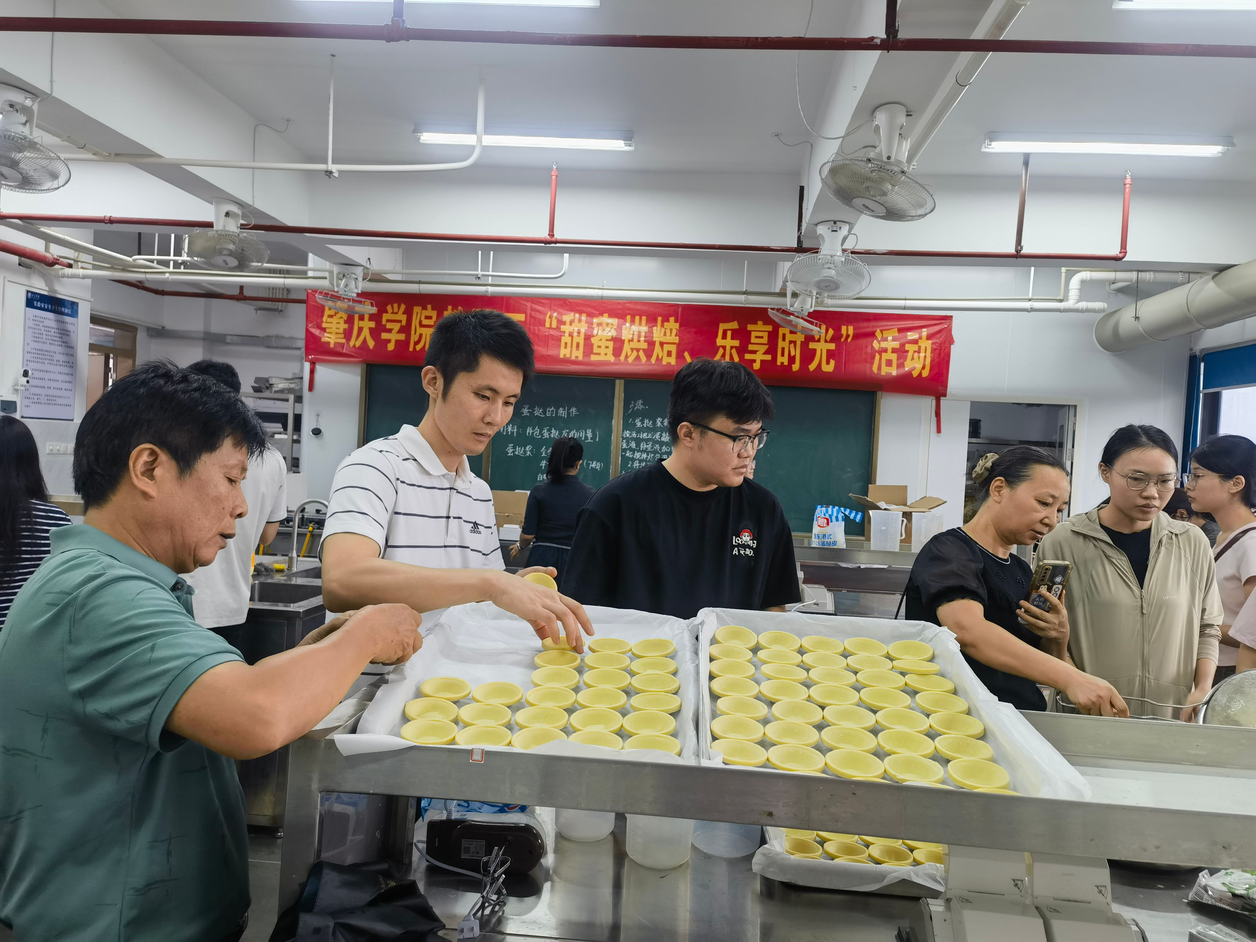本网讯 为进一步激发基层工会组织活力、凝聚团队力量,让教职工在繁忙工作之余体验手工创作的乐趣,搭建分工会之间交流互动的平台,9月28日下午,由校工会主办、食品与制药工程学院承办的“甜蜜烘焙 乐享时光”蛋挞制作活动,在实训中心 506室温馨举办。各分工会50余名教职工代表参与了此次活动。