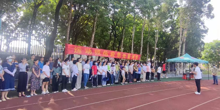 生命在于运动,运动是我们生命中不可或缺的一部分。运动不仅可以让我们拥有健康的体魄,而且可以感受到生活的快乐。但在运动过程中,由于运动姿势不正确、运动负荷强度过大、天气不理想等原因,都可能会导致运动损伤。为进一步提高我校教职工的运动损伤的预防与处置能力,6月3日上午,校工会联合体育与健康学院在学校第一田径运动场开展了“齐分享 共参与”系列活动之运动损伤应急处置演练。近150名教职工参加了此次演练活动。