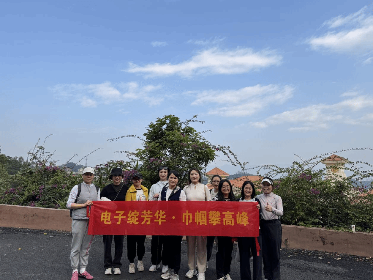 本网讯 近日,电子与电气工程学院分工会组织女教职工开展"电子绽芳华 巾帼攀高峰" 徒步登高活动。大家走进高要金象山,在攀登前行中展现昂扬向上的精神风貌,进一步凝聚干事创业、团结奋进的巾帼力量。