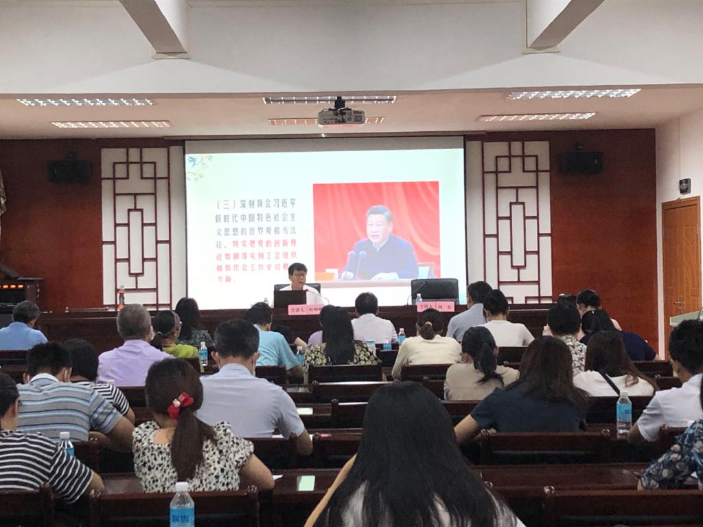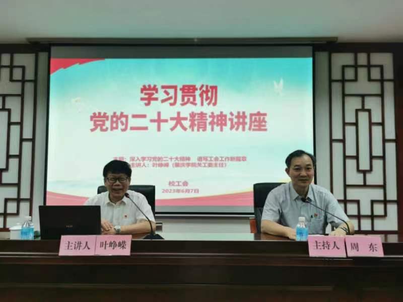 本网讯 6月7日,校工会举办学习党的二十大精神讲座,邀请原学校党委副书记叶峥嵘同志作辅导报告。讲座由周东副主席主持,工会委员代表、女职委委员代表、分工会主席代表、文体协会及各分工会教职工代表参加学习。