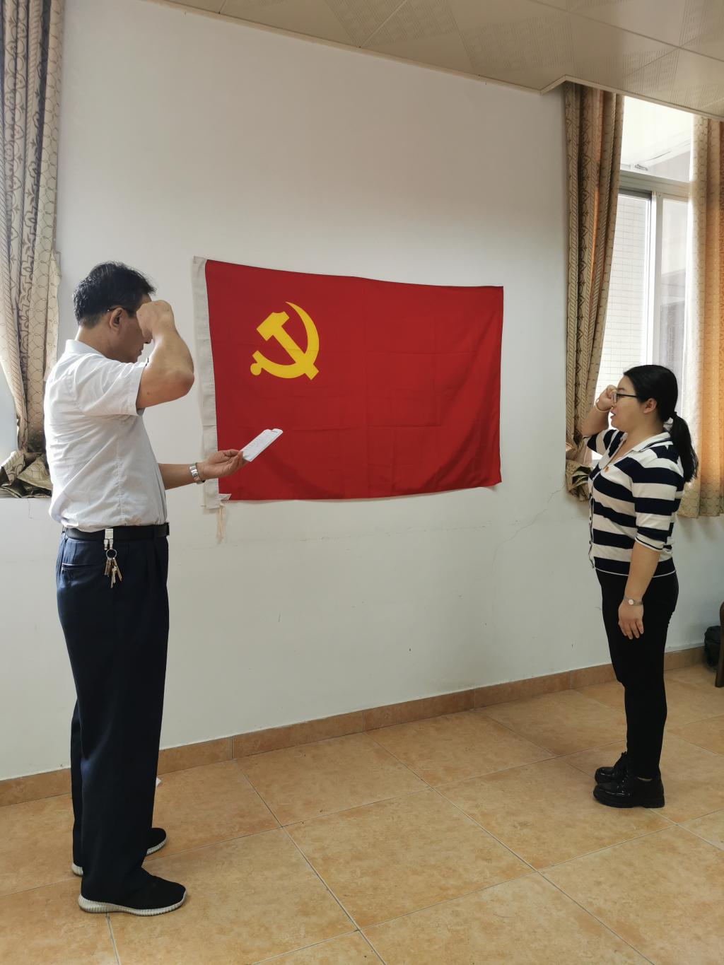 最后,由党支部书记周东同志带领贾盈同志宣读入党誓词。